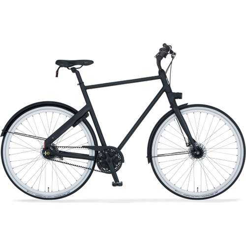 Cortina Blau herenfiets in framemaat 53cm. Kleur: Black Matt. Uitgerust met achter een Shimano Nexus 7-traps versnellingsnaaf met rollerbrake en voor een Shimano naafdynamo met rollerbrake. Opvallende details: aluminium frame, Gates belt drive – type CDN, Cortina USB stuurpen. in frame geintegreerde verlichting.